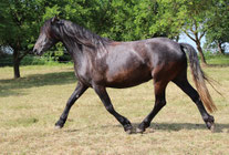 Warlander Hengst Seraphim von Greenhorn wird vom Friesenhof Zweig in Sassanfahrt eingefahren.